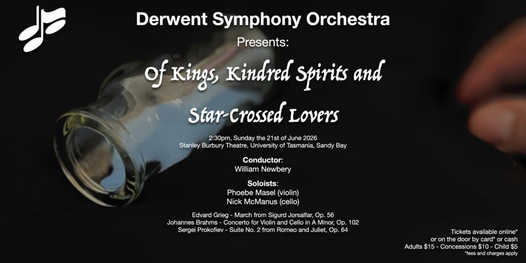The Derwent Symphony Orchestra has been playing and performing as a group since 1974 and celebrates diversity amongst our players. Our affordable concerts occur four times a year and often feature amazing amateur soloists or other Tasmanian orchestras and bands.